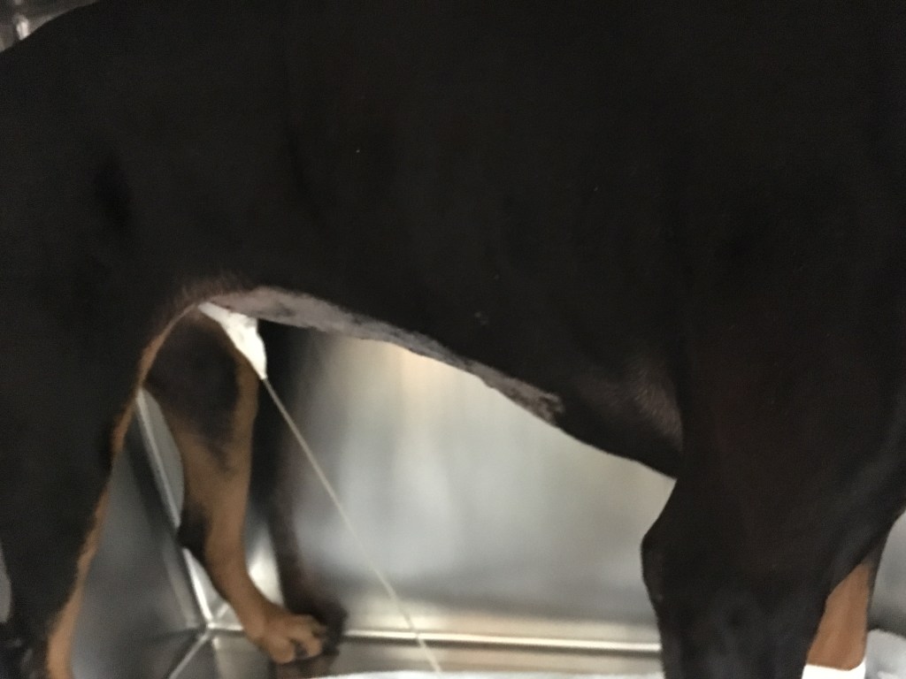 おしっこ用の管をつけている。毛が剃られている部分を開腹。